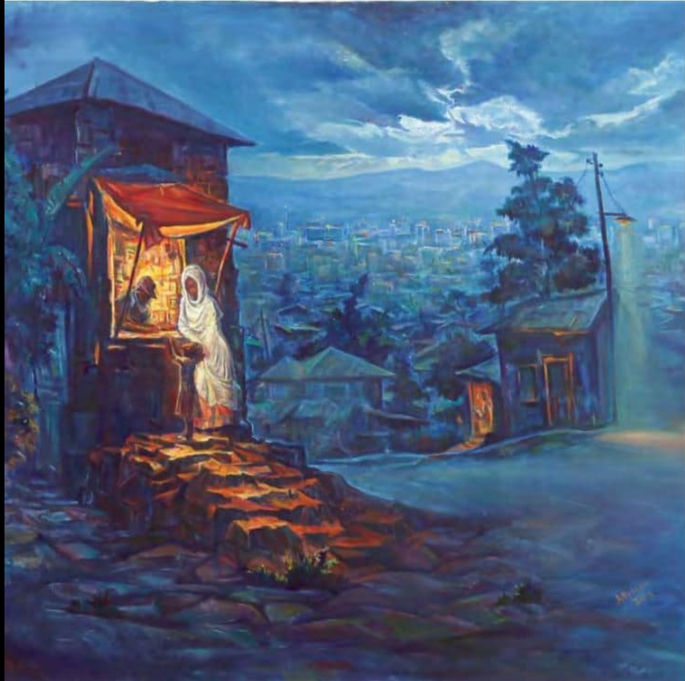 Abyalew Assefa has received many accolades during his 17-year professional career as an artist. He graduated with Great Distinction in Graphic Art from the Addis Ababa University School of Fine Arts and Design in 1991. He attended the Pied Crow School in Kenya where he studied Illustration and Magazine Publishing. He was declared Environmental Ambassador of Lake Awassa by the Southern Nations, Nationalities and People's Region (SNNPR). Over the years, his work has graced over 25 solo exhibitions and numerous group exhibitions. His recent exhibitions focus on themes such as Light and Shadow, Reconciliation with Nature, Casual and Passion for Light. The themes in his work reflect his concerns and philosophy regarding art, humanity and the natural environment. His latest solo exhibition revolves around the theme of Love and Sustainable Environment.
